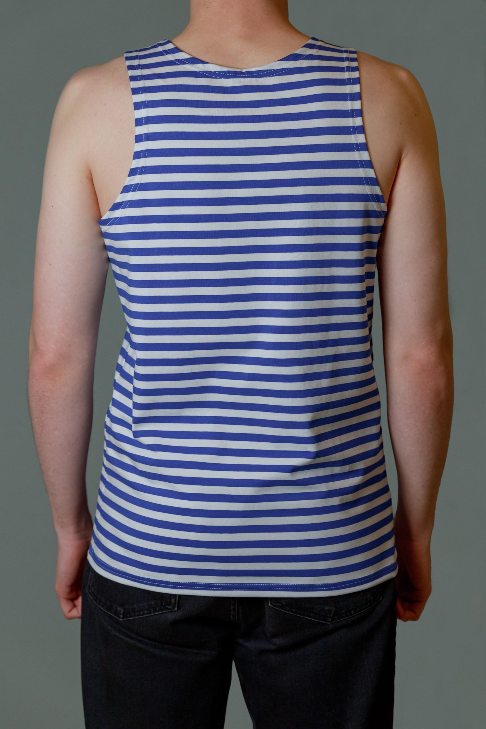 Настоящая тельняшка - это не просто элемент военной формы одежды, а символ мужества и принадлежности к братству ВДВ. Изготовлена по ГОСТу для военнослужащих ВДВ. Тельняшку знают все: это универсальная, понятная, долговечная вещь для любого сезона. Правильный выбор тельняшки— это функциональность и комфорт в процессе выполнения задач. Благодаря своей прочности и гипоаллергенности тельняшки-майки получаются очень качественными и подходят людям с чувствительной кожей. В ней можно активно двигаться, отдыхать, заниматься спортом, работать, при этом влага от тела выводится через микропоры трикотажа, и верхний слой тельняшки-майки остается при этом сухим. Большую популярность тельняшке-майке принесли вышеназванные свойства, поэтому, тельняшка-майка стала очень популярным трикотажным изделием. Летняя тельняшка-майка хлопчатобумажная кулирка – хороший выбор для тех, кто служит в ВДВ, любит туризм, спорт, активный отдых, дачу, охоту, рыбалку. Полотно из 95% хлопка и 5% полиэстера. Сохраняет форму и цвет даже после многочисленных стирок. Рекомендуется стирать не более 30° С при деликатном режиме или вручную. Сушить лучше на горизонтальной поверхности, чтобы избежать вытягивания ткани, при глажке использовать режим отпаривания. Хранить в сложенном виде.